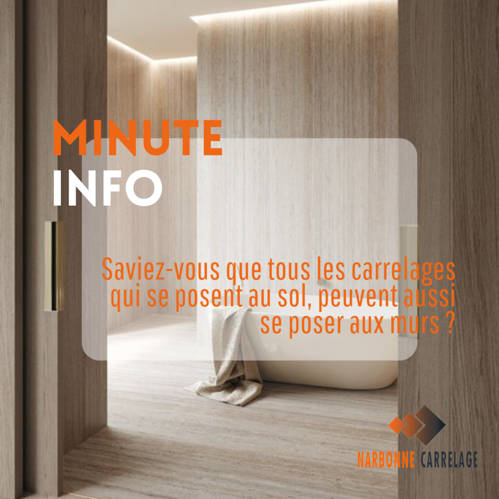 Le saviez-vous carrelage ? Minute info : tous les carrelages pouvant aller au sol peuvent aussi se poser au mur ! (Attention, l’inverse n’est pas possible)
